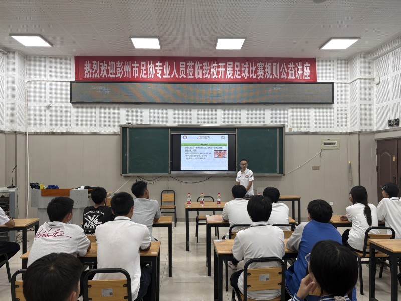 为备战彭州市、成都市校园足球赛事,彭州市足球协会于9月11日中午派遣专业讲师赴成都石化工业学校(彭州市技工学校)南校区107团员活动室,开展最新足球比赛规则专题讲座。成都石化工业学校(彭州市技工学校)足球队全体教练及队员参与活动,通过纪律教育与规则实训相结合的方式,为校园足球赛事规范化发展夯实基础。
