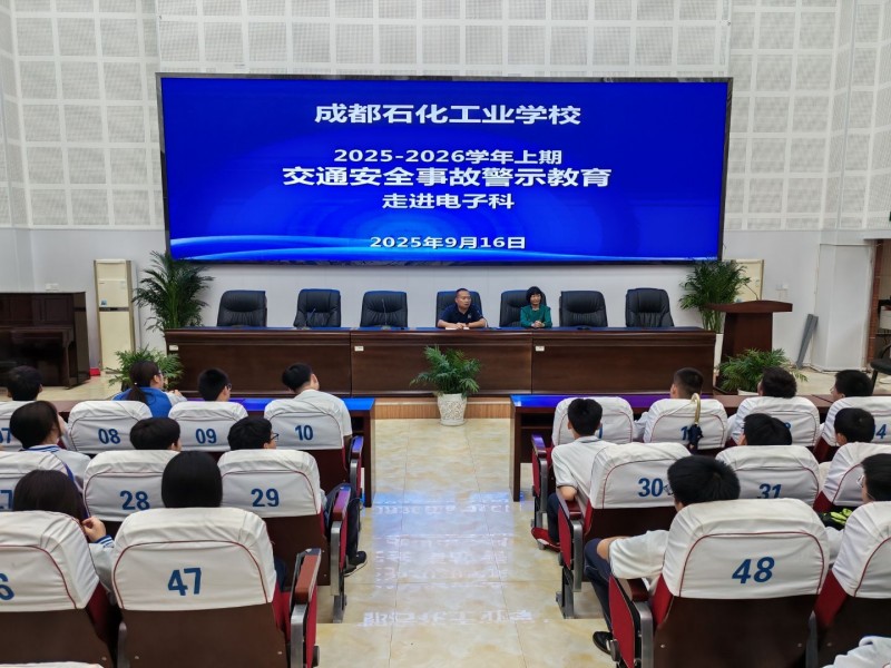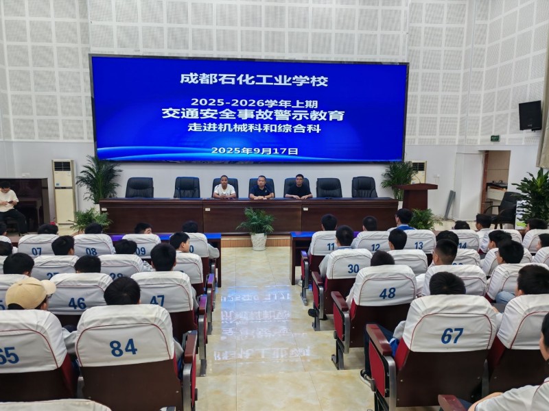 为进一步强化校园交通安全教育,提升学生交通安全意识与自我防护能力,营造安全、文明、有序的校园及周边交通环境,自新学期开学以来,成都石化工业学校围绕“交通安全”主线,精心组织开展了一系列全覆盖、多维度、立体化的道路交通安全教育活动,切实为学生平安上学路筑起 “防护屏障”。