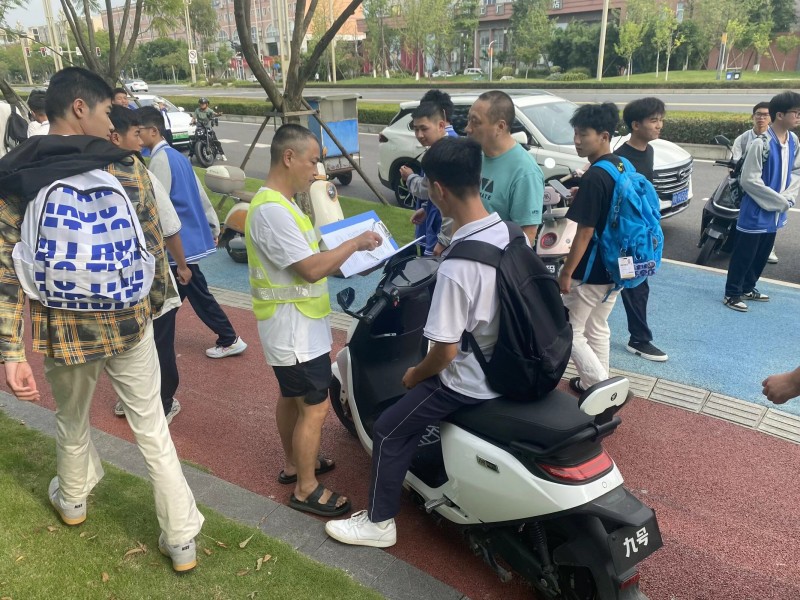 在日常监管方面,学校安保科每周常态化开展校园周边交通安全专项检查,重点排查校门周边电动车辆停放秩序,精准掌握“九号”等易改装电动车辆的类型、数量及使用情况,并联合属地派出所、交管部门开展联合劝导教育,及时纠正不规范停放、违规改装等行为,从源头降低安全隐患。 在警示教育层面,学校六个专业科分别组织骑行上下学的学生集中观看交通安全事故警示教育片。通过剖析发生在身边的真实事故案例,让学生直观感受违规出行带来的严重危害——不仅可能造成财产损失,更会威胁生命安全,从而进一步筑牢“生命至上、安全第一”的交通安全思想防线。