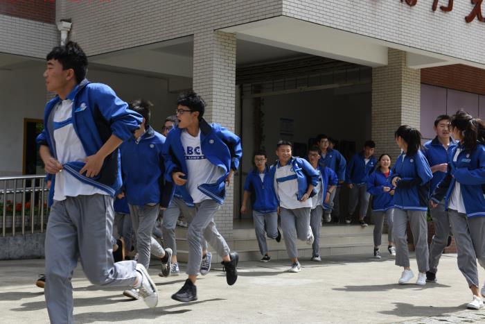? 为确保演练成功有效地开展,学校前期制定了安全、科学的演练方案和应急预案。本次演练分为地震避险、应急疏散、集中点评三个阶段,上午10点20分,随着第一次演练信号响起,全校师生应急躲避到课桌椅底下。当灾情稍缓后,模拟警报声第二次响起,全体师生将书本、书包放置头顶按安全逃生路线有序疏散到操场,随后各班级清点人数,按照班级——专业科——政教处——现场总指挥的顺序逐级上报安全撤离人数情况。随后还举行了住校生应急疏散演练。