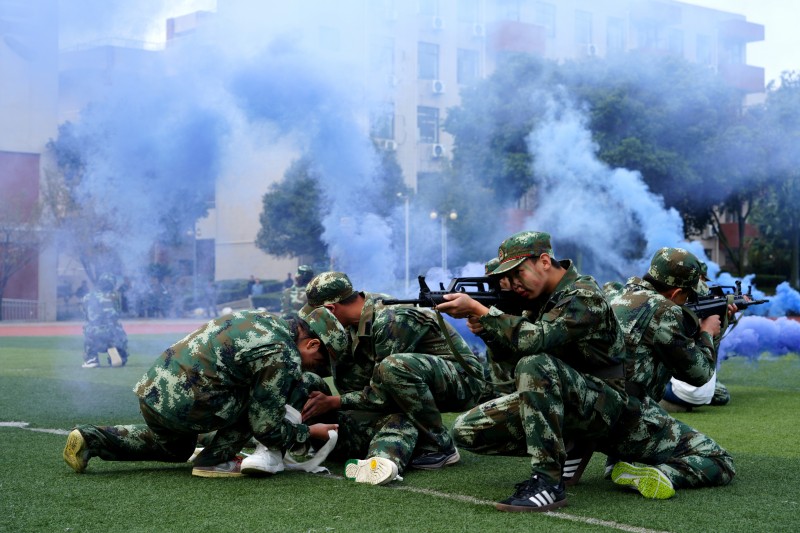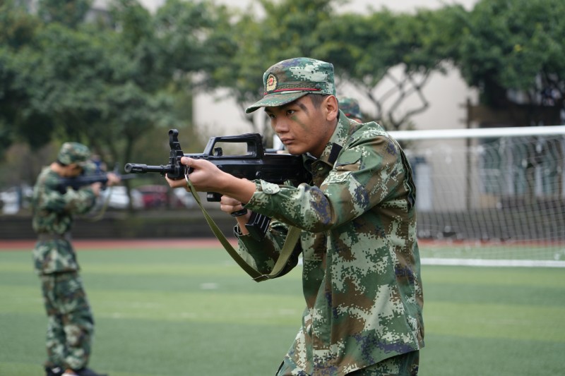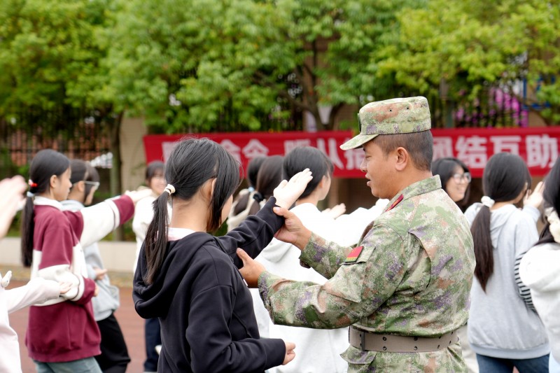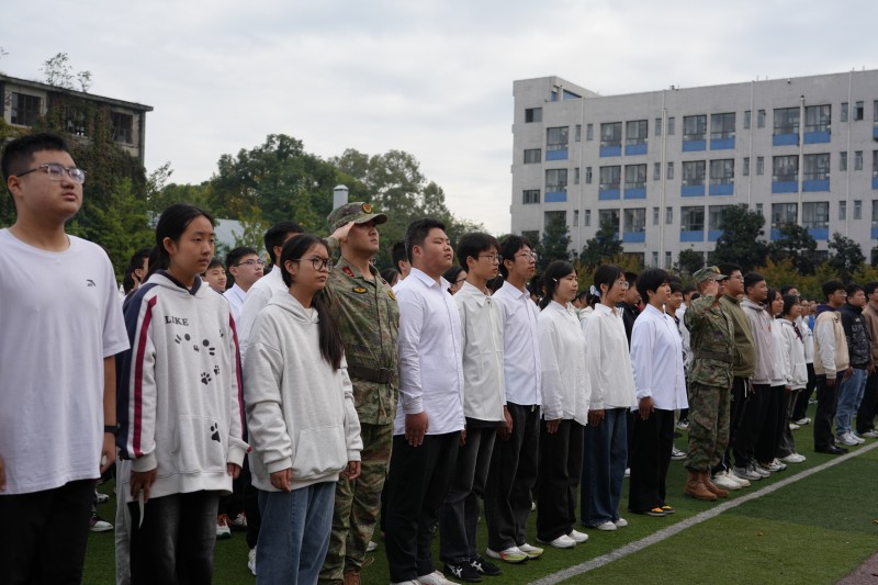 上午9:30,国歌奏响,五星红旗冉冉升起,全体人员肃立致敬,仪式正式启动。军训总教官向校领导报告就绪后,汇报展示逐一展开。手语操展示,同学们动作整齐划一,神情专注认真,用灵动的手势传递着青春正能量,展现出刚柔并济的精神风貌;队列展示中,展示方队步伐铿锵、口号嘹亮,摆臂、踢腿等动作标准规范,充分彰显了军训期间的扎实训练成果;擒敌拳与军体拳展示更是将现场气氛推向高潮,学子们出拳有力、呐喊震天,招式刚劲利落,尽显少年意气与军人风范,赢得了在场师生的阵阵掌声;内务展示,叠被如切豆腐块,方正平整、棱角分明,一床床整齐划一的军被操场陈列;战术与战场救护展示,参训学生动作娴熟、配合默契,模拟战场环境下的应急处置流程,展现了过硬的应急处置能力与团队协作精神。