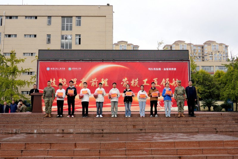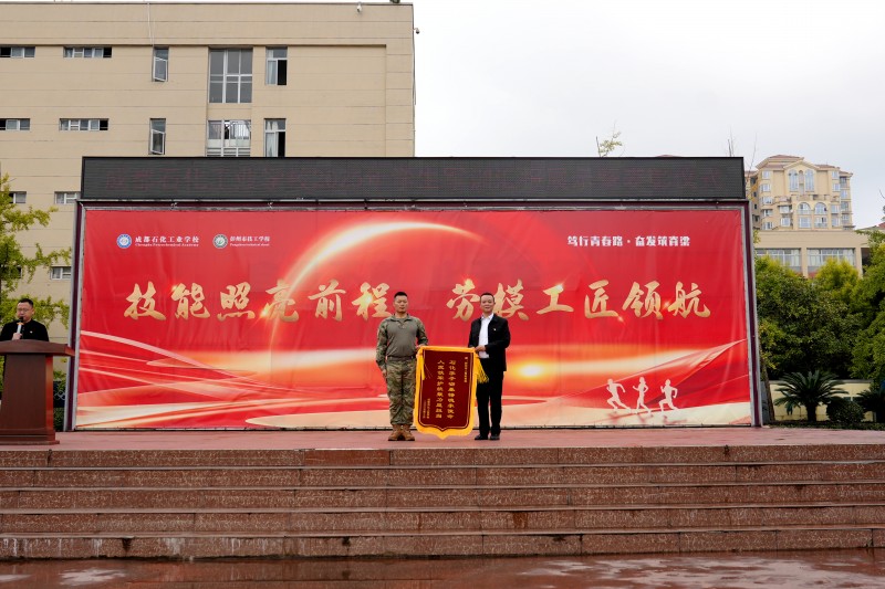 仪式上,张昌波代表学校向彭州市人民武装部赠送锦旗,上书“石化学子砺基铸魂承使命,人武铁军护航聚力显担当”,锦旗鲜红,字句铿锵,既是对武装部鼎力支持的感谢,更是军民携手共育英才的生动见证。