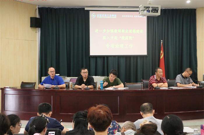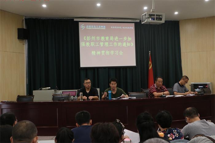 大会组织学习了《成都市中小学(幼儿园)教师职业道德行为准则》(2017年修订版)、《事业单位工作人员处分暂行规定》、《彭州市教育局进一步加强教职工管理工作的通知》和《彭州市中小学教师违反职业道德行为处理办法》(试行)等上级文件精神,要求全体教职员工进入工作状态,严格遵守工作纪律,团结协作,为成都石化工业学校更好更快的发展作出新的贡献。