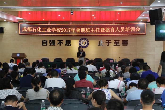 ? ?为加强学生工作队伍建设,提升学生管理队伍业务水平,8月23日和24日,成都石化工业学校举办了2017年暑假班主任暨德育人员培训。黎定成、唐敦毅、周川益、魏刚华、段洪云、刘遵勇等校级领导,各部门负责人,学校德育工作人员及全体班主任参加会议。