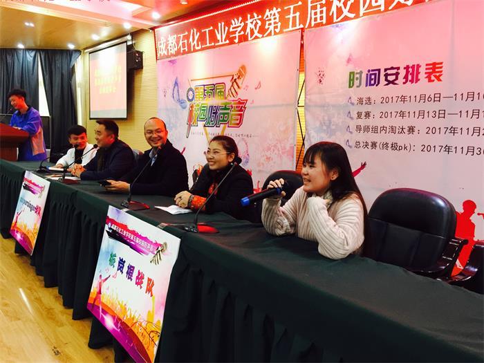 11月6日中午1点,成都石化工业学校在北校区多功能厅召开了第五届校园好声音启动发布会。