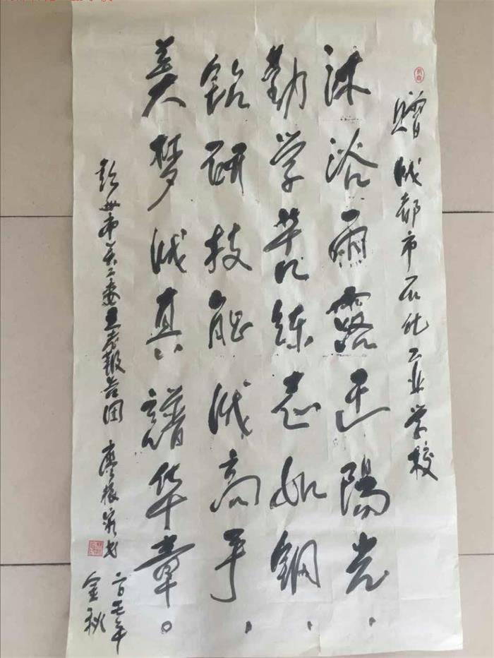 最后,廖振容老师还为学校关工委赠送了亲笔书写的“沐浴雨露迎阳光,勤学苦练志如钢,钻研技能成能手,美梦成真谱华章”的诗句。