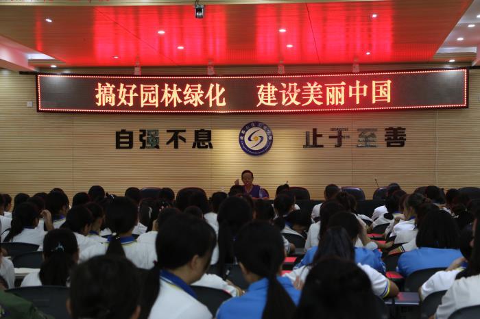 廖振容老师结合自己的亲身实践和体会,向学生们详细讲解了什么叫园林绿化、搞好园林绿化的重要性及园林绿化对人身体健康的重要意义,进而对同学们提出了爱护自然、爱护环境、搞好绿化的殷切希望和要求。