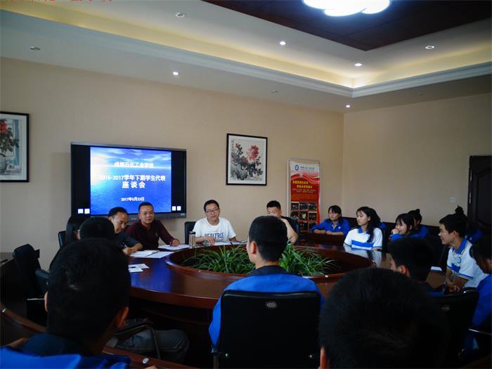 ? ?为进一步查找在后勤服务、教育教学管理工作中存在的问题,切实提高服务质量,提升管理水平,搭建师生沟通交流的平台,构建和谐校园,成都石化工业学校政教处于5月23日下午召开了学生代表座谈会,听取学生代表对学校后勤服务、教育教学管理、学生校服等方面工作的意见和建议。来自各专业科23名学生代表,政教处张昌波主任以及团委副书记杜甫老师、专业科兰海波副科长、樊均国副科长、刘丽老师参加了会议。