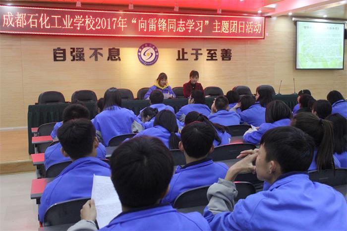 ? ?为开展好学习雷锋主题活动月活动,3月2日中午1:20,成都石化工业学校南北校区分别在多功能厅开展了“向雷锋同志学习”主题团日活动,共青团干部共计100余人参加了活动。