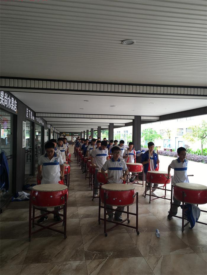 今天是展示前的第三天,一大早艳阳高照,10点过就已经烈日当空,闷热的天气,让多数人都躲到了室内。空旷的运动场,威风锣鼓队训练一站就是半天,好多同学和老师的肩膀都晒脱了皮,晒裂了口,但没有一个叫苦叫累。