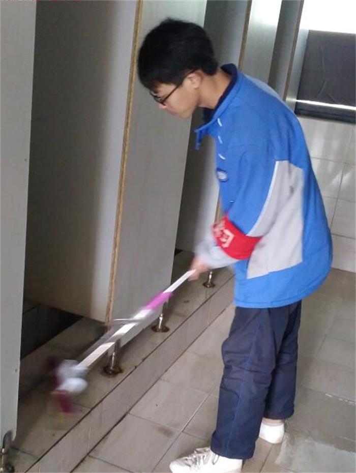 在环卫办老师耐心的指导下,在班主任的关心下,实习同学发扬不怕苦、不怕累、不怕脏的雷锋精神,以饱满的热情和积极的状态对过道、楼梯、厕所进行了常规清理,对墙边的卫生死角进行了彻底清理。