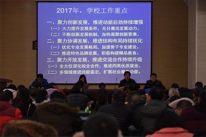 刘应建校长指出,2016年学校的各项工作都取得了显著的成效,特别是在“国家级农村职业教育和成人教育示范县”评审会上赢得了省厅领导和专家的一致首肯,这既是动力,更是压力。他表示学校将再接再厉,稳中求进,不断巩固办学成果,规范办学行为,提升专业建设能力。他要求全体教师员工讲纪律,守规矩,增强“四种意识”,忠于职守,矢志不渝地提高教育教学质量,坚定不移地抓好安全工作,开启学校发展新篇章。